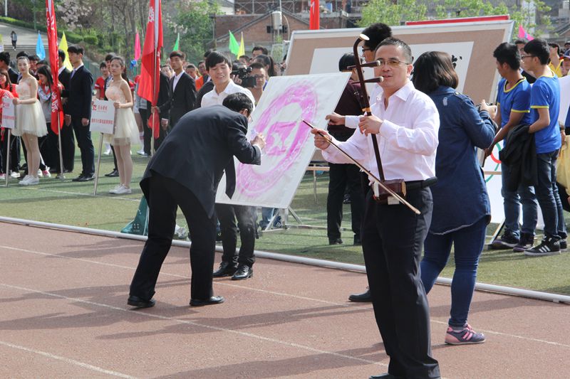 教工代表队方阵精心策划准备的入场式迎来了雷鸣般的掌声和热情的喝彩,伴随着洪亮整齐的口号:博闻强志,正道直行,教工代表队迈着矫健的步伐通过主席台,教职工方阵以歌伴舞《好日子》、民族乐器表演、书法表演等展示了书法协会、篮球协会、足球协会的风采。展示了老师们多彩多姿的才艺,呈现出了盛世欢歌的喜庆氛围,烘托了欢乐祥和的运动盛会。在大型文体表演节目当中,学生大型团体操表演,气势宏伟,充满活力与激情。