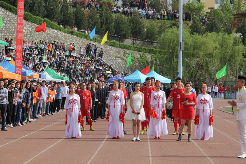 4月21日上午,阳光明媚,春风和煦,校运动场彩旗飘扬,身着鲜艳队服的师生齐聚操场,我校2016年春季田径运动会隆重开幕了。校领导刘建林、魏书堂、彭虎军、范新会、刘宝盈出席开幕式。各二级学院和教职工代表队组成10个方队,以昂扬的姿态通过主席台,展示了我校师生积极向上、朝气蓬勃的风采。