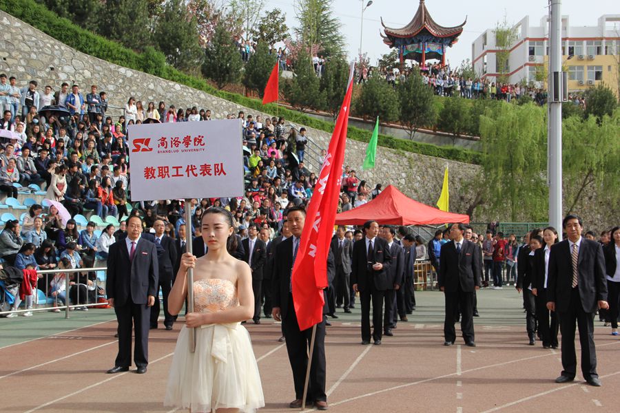 春暖花开.阳光明媚,2015年4月16日商洛学院田径运动会隆重开幕,别样的风采,高昂的斗志,学院教工代表队走过主席台,他们骄健的步伐,英姿飒爽的身影,代表着商洛学院焕发出的勃勃生机。在全校师生共同努力下,商洛学院正在发生日新月异的变化!今天,不光是同学们的运动盛会,也是我们教师的另一个舞台,同学们,你们可以看到,田径场上的老师一样潇洒。让老师和同学们一起放飞年轻的心,一起秉承着“更高、更快、更强”的奥运精神,驰骋在赛场!我们坚信:在今天的这片竞赛场上,教工代表队将不负众望,以新的姿态迎接新的挑战,用拼搏的汗水点燃心中激情的梦想,用优异的比赛成绩书写壮丽辉煌的篇章!加油!商洛学院教工代表队!胜利属于你们!