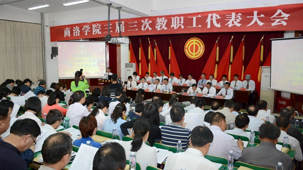 5月20日上午,我校三届三次教代会隆重开幕。163位正式代表,6位列席代表出席大会。大会听取审议了《2016年学校工作报告》《2016年学校财务工作报告》,听取审议了《商洛学院第三轮聘用工作方案(试行)(草案)》《商洛学院岗位绩效工资分配办法(试行)(草案)》的说明和《商洛学院校园建设规划方案》的说明,审议了《商洛学院提案工作报告》《商洛学院二级教代会实施细则(草案)》。