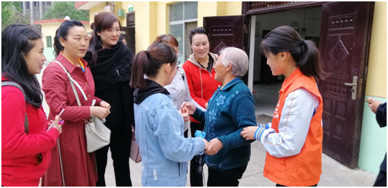 志愿者们和老人聊天