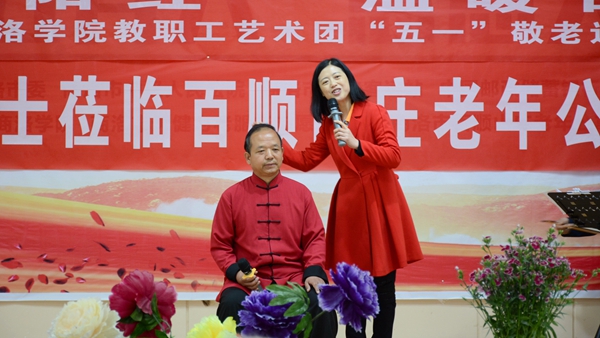 这次活动得到了校工会和商洛市天健为老服务志愿者协会的大力支持。艺术团负责人张江毅代表演出人员为百顺山庄和老人们表达了美好的祝福和祝愿,副院长许阳代表百顺山庄敬老院向艺术团表示热烈的欢迎和衷心的感谢,希望和我们一起做好敬老爱老事业。