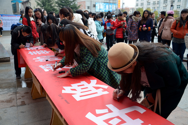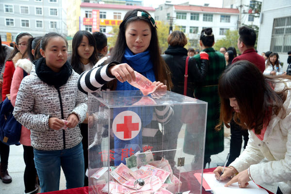三五块、十多块、数百块,都承载着师生们对王珍琪的鼓舞与祝福汇聚到募捐箱中。师生们还纷纷在活动横幅上写下了“树立信心,坚强面对”“战胜病魔,早日康复”等一句句祝福的话语。一时间,爱的暖流汇聚整个校园。